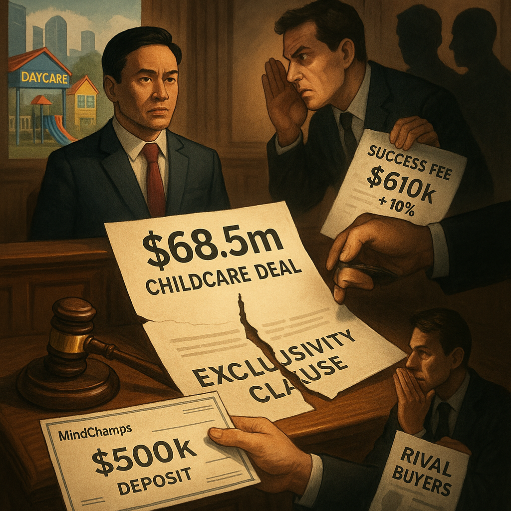 A buyer has abandoned a $68.5 mil acquisition of nine childcare centres because the seller continued to field interest from other interested parties despite an exclusivity clause in the contract.